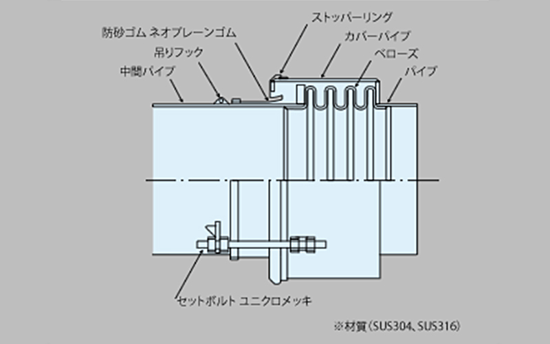 弁質などの構造物の出入り口や構造物から構造物、軟弱地の沈下対策などに 威力を発揮する継手です。